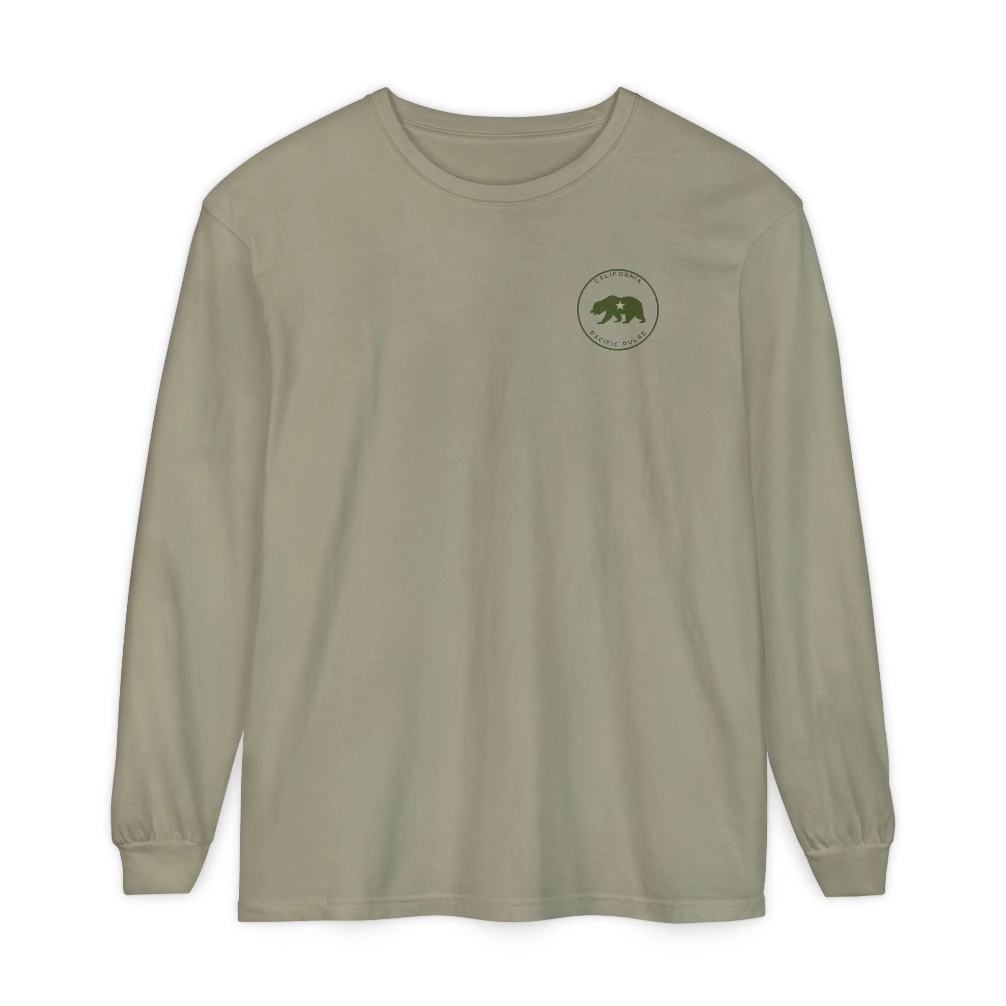 Introducing the reimagined California Positivity long sleeve tee, now featuring the iconic CA Bear on the front and the timeless Pacific Pulse wave design on the back. This shirt is a celebration of California's essence—strength, resilience, and the uplifting spirit that defines our Golden State.
