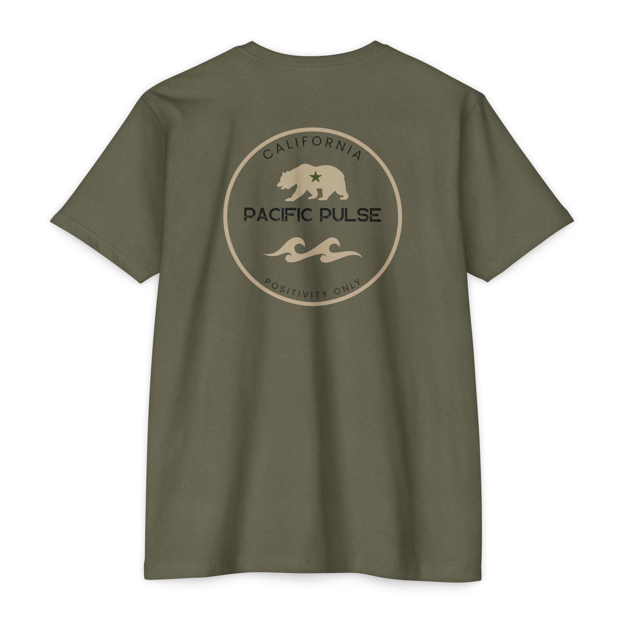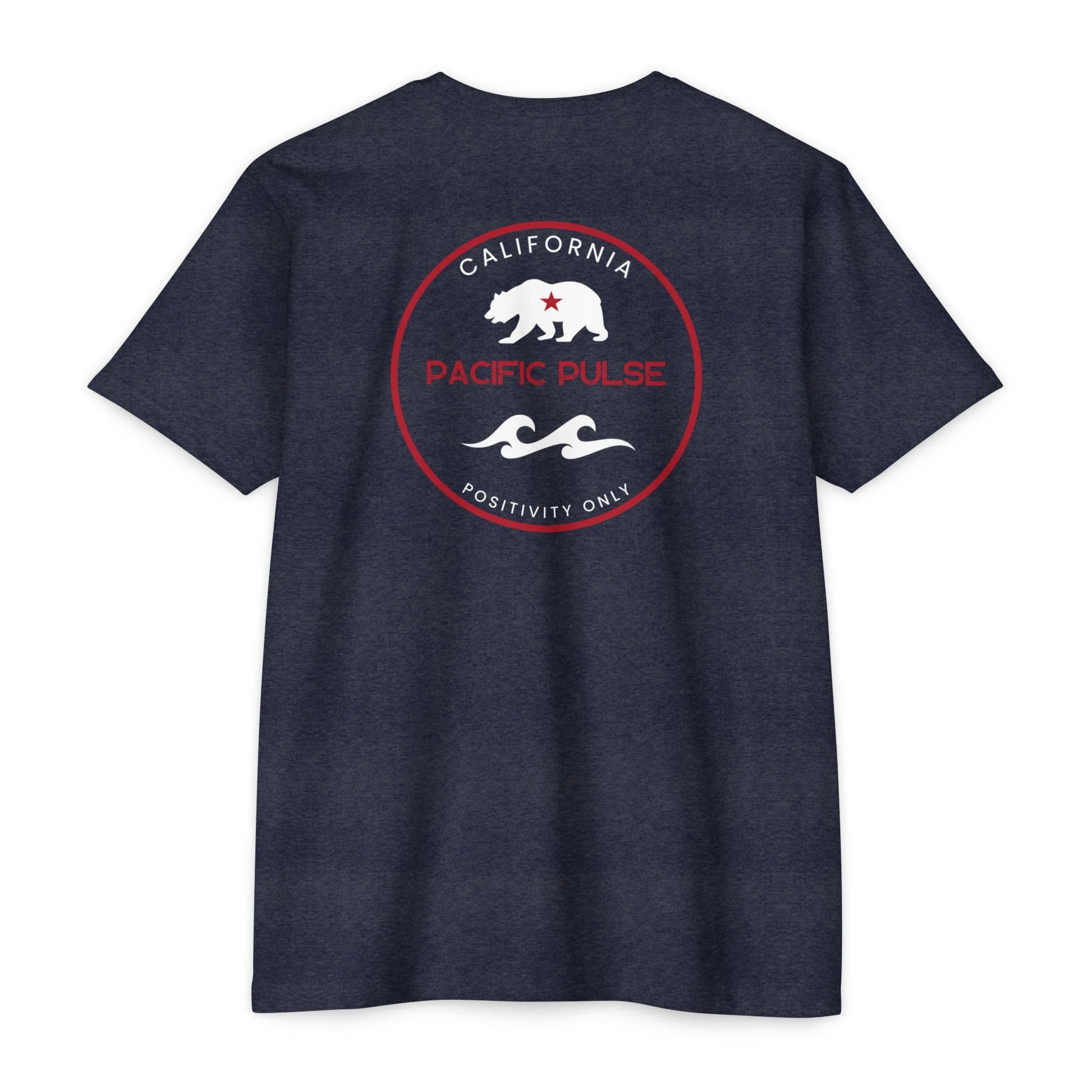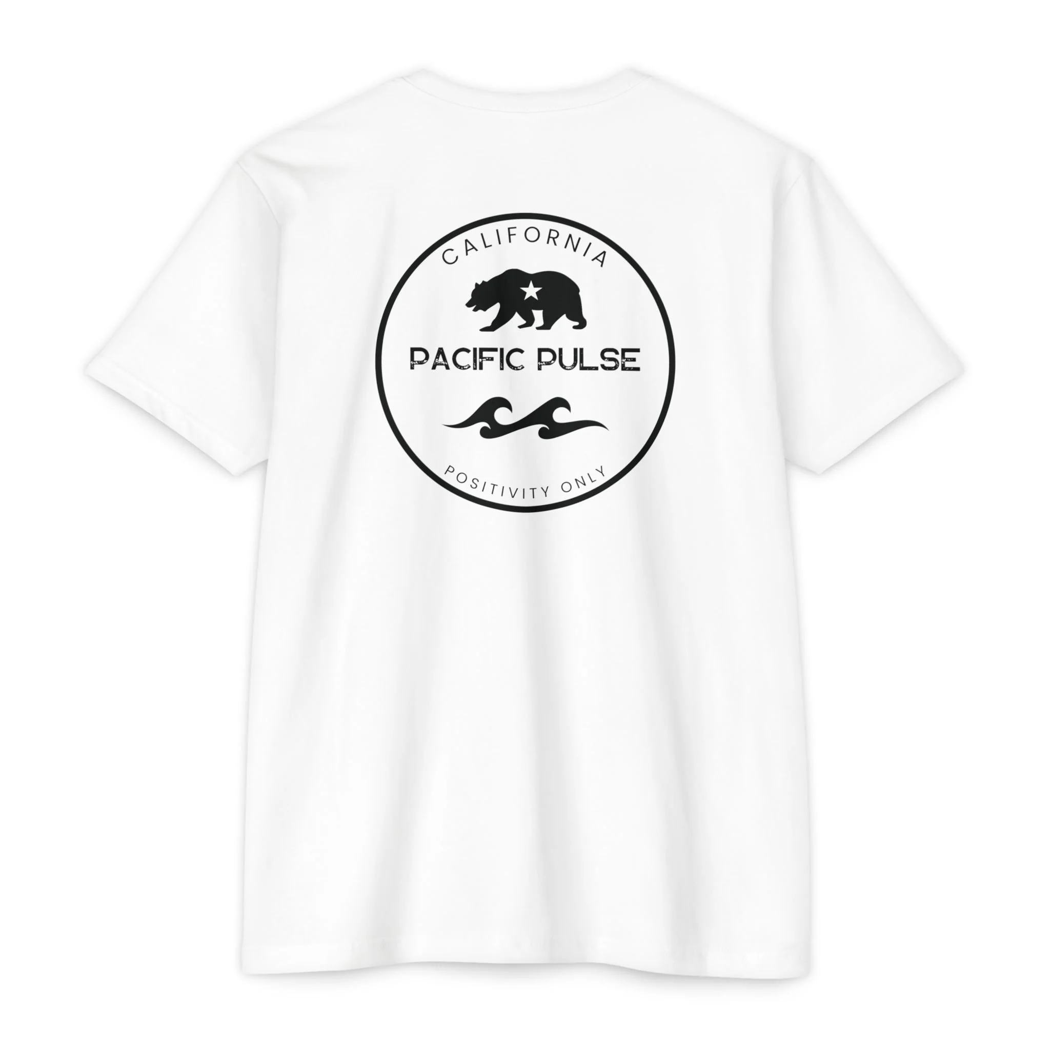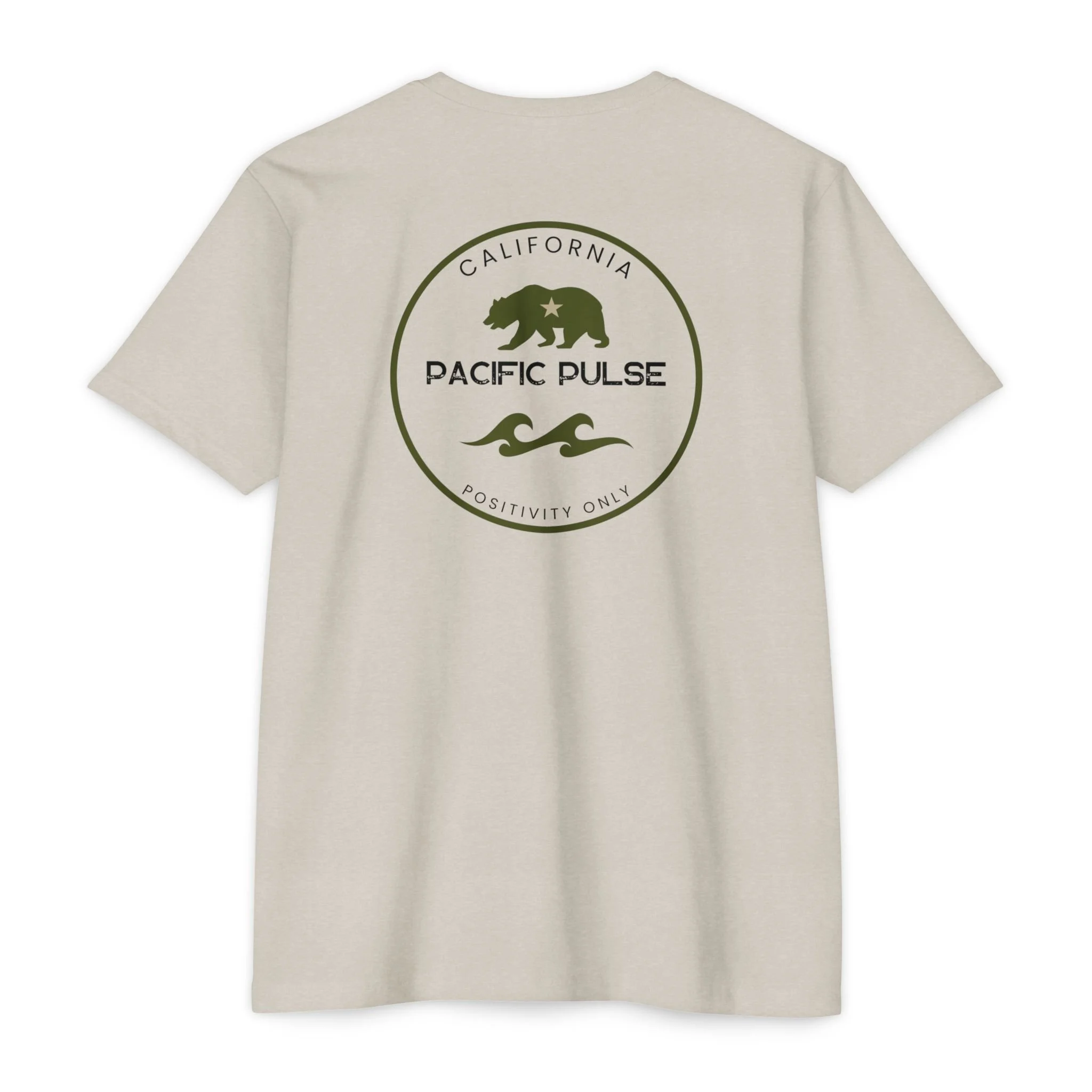 Introducing the reimagined California Positivity tee, now featuring the iconic CA Bear on the front and the timeless Pacific Pulse wave design on the back. This short sleeve tee celebrates the essence of California—strength, resilience, and the uplifting spirit that defines our Golden State.